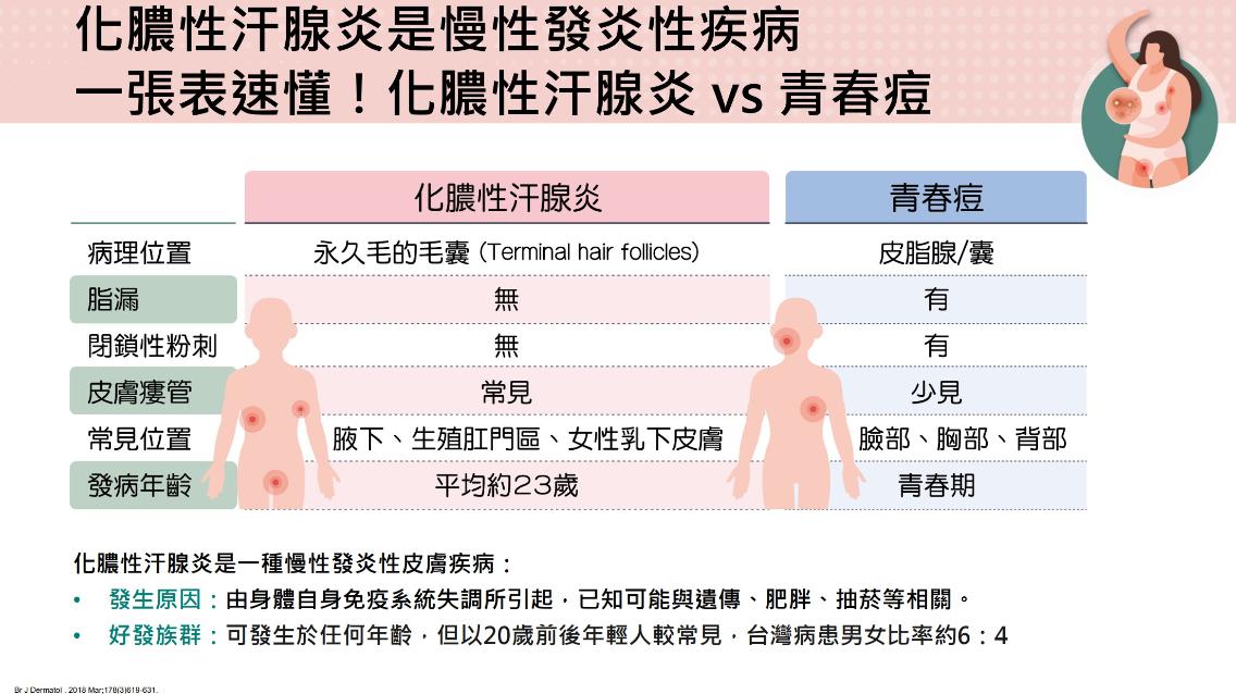 皮膚科醫師指出,這其實是一種慢性發炎性皮膚病,常被誤認為青春痘或粉瘤,根據研究,患者平均需歷經7年以上才能正確診斷。