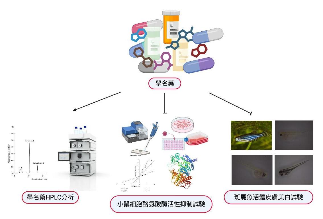 全球美白藥妝產業市場龐大,每每走進藥妝店或路過百貨商店專櫃,都能看見琳琅滿目、主打美白功效的保養與化妝產品。然而目前醫療臨床及化妝品市場上使用的皮膚美白藥效成分,如對苯二酚(Hydroquinone)與麴酸(Kojic acid),大都具有生理毒性,在使用上有其限制。為了突破耗時長久、成本昂貴、風險門檻高的新藥研發,國立臺南大學生物科技學系的張德生教授,以「舊藥新用」的策略,從現有的學名藥中下手,找出新一代的皮膚美白藥主角。