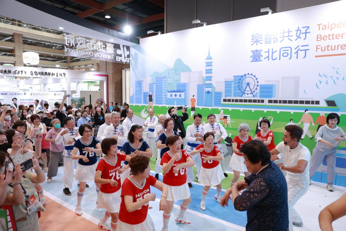 臺北市政府由多個局處攜手參與,全面展現市府推動高齡福祉的用心,體現對長者的尊重與關懷。此次展區內容結合四大政策面向,分別為:「長青樂活遊臺北」,帶領長者走訪城市特色景點,體驗手作樂趣,鼓勵走出戶外、深入社區;「綻放活力新風采」,推動樂齡學習、運動及就業機會,促進高齡者積極參與社會;「樂齡生活更安心」,整合健康管理、長照服務與社區支持系統,打造安心便利的生活環境;以及「產業創新」,市府透過「產業發展獎勵補助計畫」與「StartUP@Taipei創業服務辦公室」,提供資金補助、資源整合與市場鏈結,鼓勵企業投入高齡健康領域,支持高齡友善與智慧健康產業發展,帶動城市創新動能。
