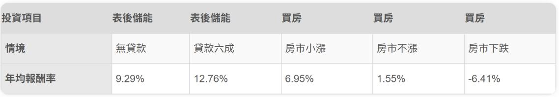 (表二)投資項目報酬率比較。資料來源:綠學院整理