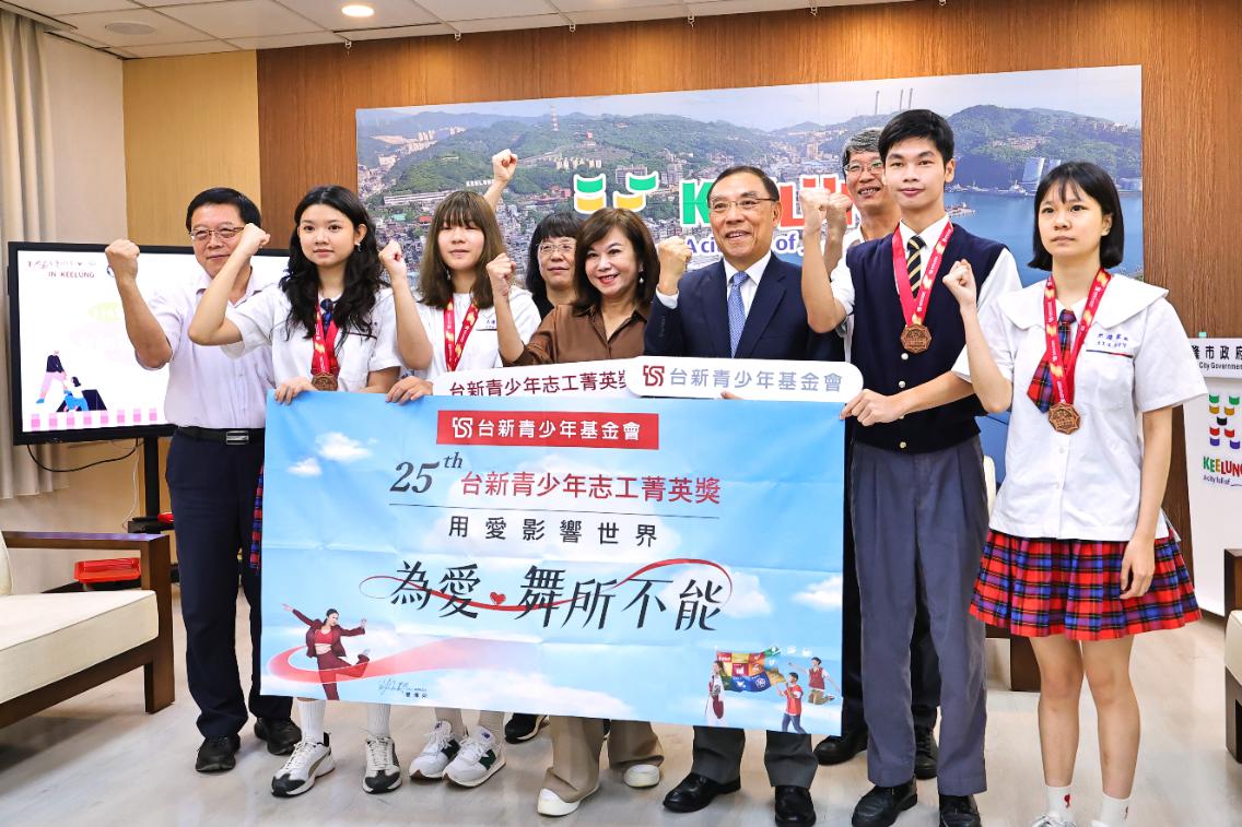 第25屆「台新青少年志工菁英獎」得主揭曉,基隆市共有4位學生自全國2,000多名參與者中脫穎而出,榮獲僅120名額的「奉獻獎」殊榮。基隆市副市長邱佩琳今(13)日親自接見表揚得獎學生與學校,感謝同學們用行動溫暖社會,也肯定學校長期推動志願服務的努力,讓青春力量在基隆閃閃發光。