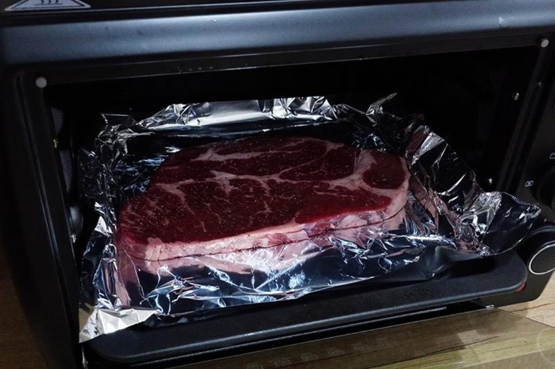 我這次製作的是五分熟的牛排,所以100度烤箱10分鐘。但特別注意,這次熟度的度量只適用於沙朗牛排,不同厚度牛排設定就需要調整。