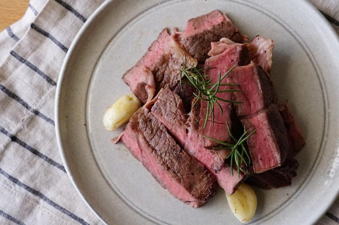 擺盤後看起來也太好吃了!牛排是很均勻的五分熟,好吃程度完全不輸使用舒肥法,而且比舒肥更加省時。