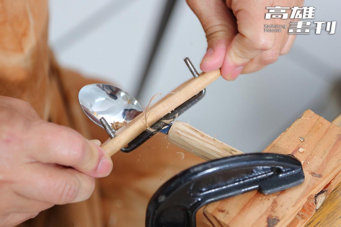 除了果實的創新利用,社區也為荔枝樹修剪後的木材賦予新生命。不僅取下樹皮製作荔枝木煙燻溏心蛋,還開發出文創小物與DIY體驗活動。南勝社區專案經理陳春月分享,早期這些木材多用來燒水、煮飯,如今則被巧妙運用於餐具手柄、小掃把,甚至用於荔枝染等,成為兼具美感與環保精神的永續商品。