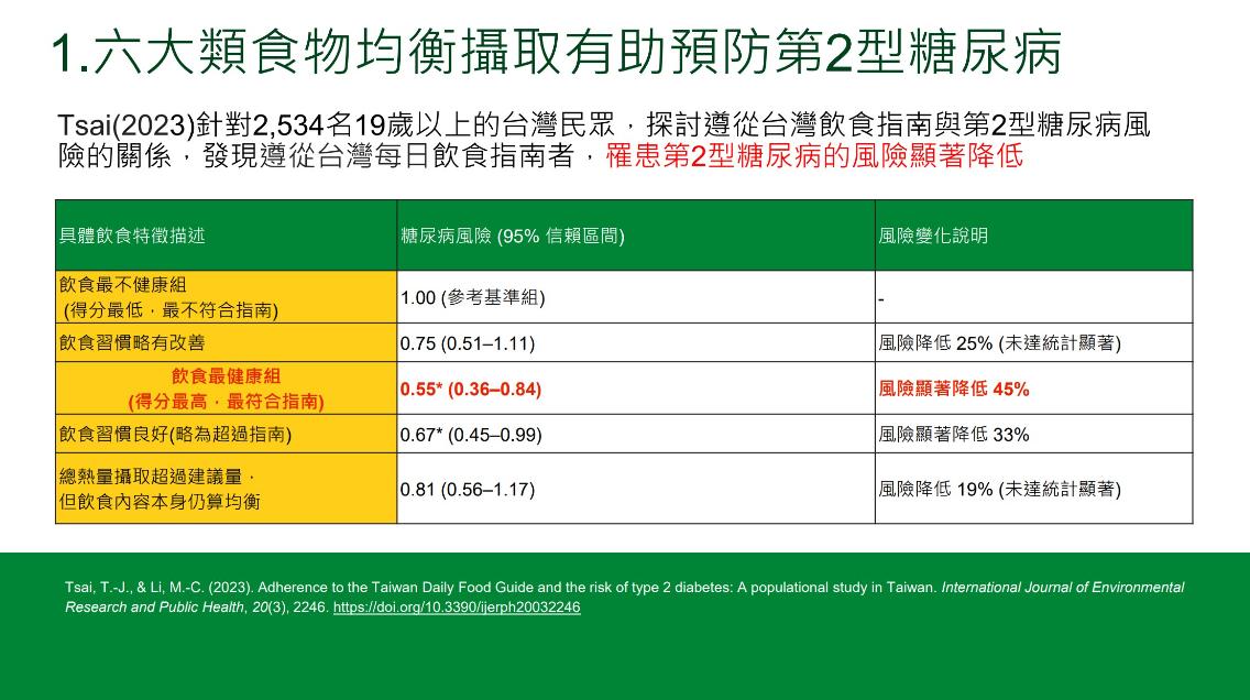 美國糖尿病學會最新指引提醒,均衡攝取六大類食物並重視營養密度,是控糖與維持健康的關鍵。「對糖尿病友與糖尿病前期族群而言,選對水果種類、控制份量與搭配餐食時間,可兼顧美味與健康。」王景淵強調。