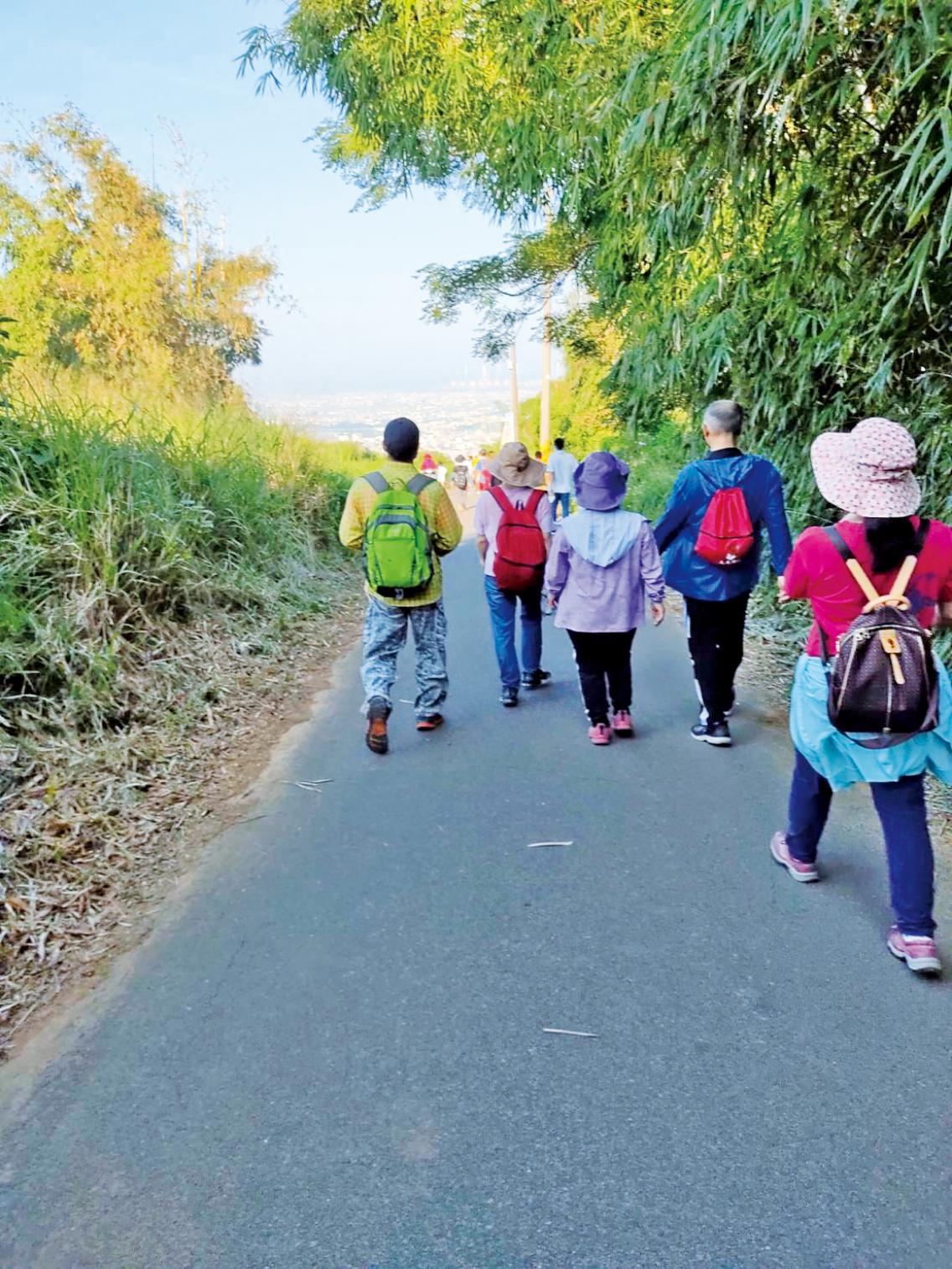 沿著中二高高架橋下鋪設成的健走的步道,全長1.4公里,往返約2小時。登山口位於中二高與臺灣大道的交叉處,設有停車場、休憩設施及座椅,是少數有加蓋的步道,走起來相當舒適,沿途可欣賞到周圍美景,感受著階梯步道延伸的唯美畫面。