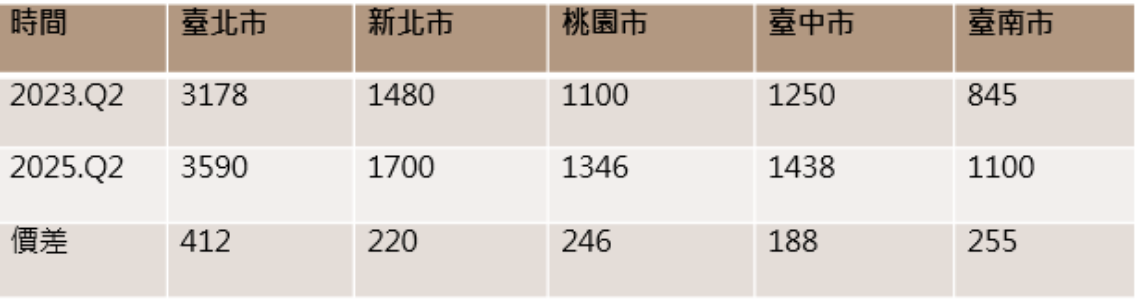 統計顯示,2023年第二季住宅大樓加車位全國的房價中位數是1200萬元,今年第二季則是增加到1378萬元,房價中位數多出178萬元,六都近兩年房價都出現明顯上揚,新北市住宅大樓加車位的中位價從2023年第二季的1480萬元,今年第二季則是1700萬元,多出220萬元,桃園市則是從1100萬元增加到1346萬元,台中市從1250萬元增加到1438萬元,台南則是從845萬元增加到1100萬元,高雄市則是從2023年第二季的1010萬元,增加到1200萬元。