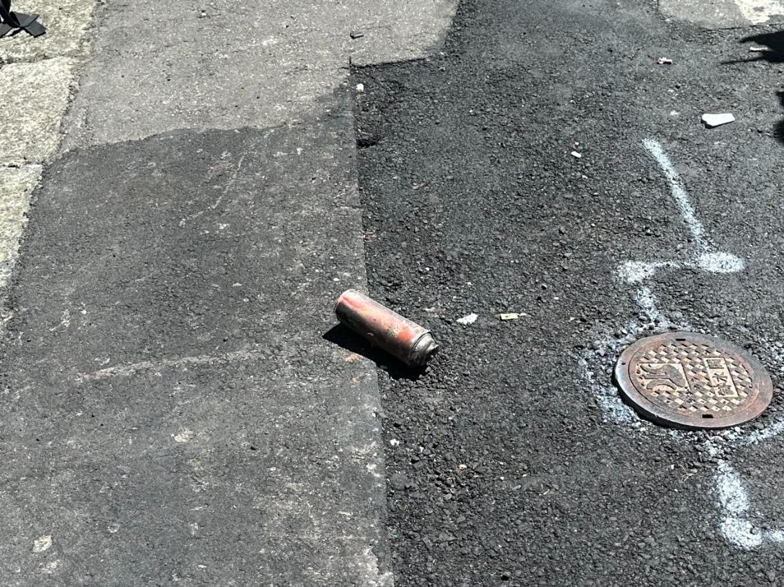 火燒車現場的地上隨處可見瓦斯罐。(照片來源/信傳媒編輯部)