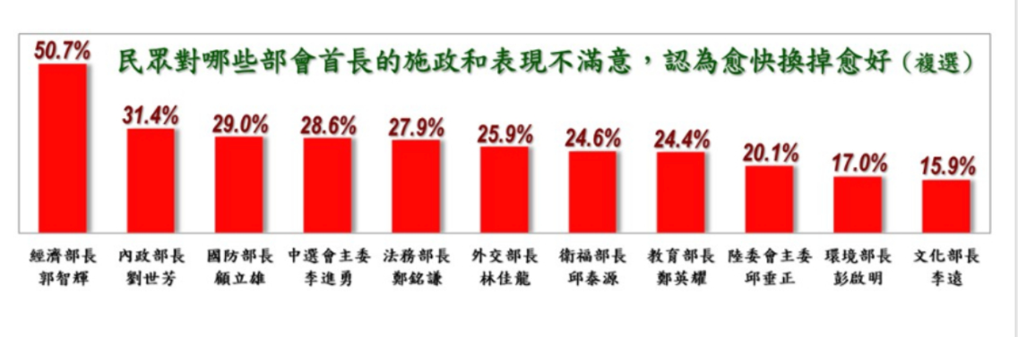內閣不滿意的前五名分別是:郭智輝、劉世芳、顧立雄、李進勇、鄭銘謙