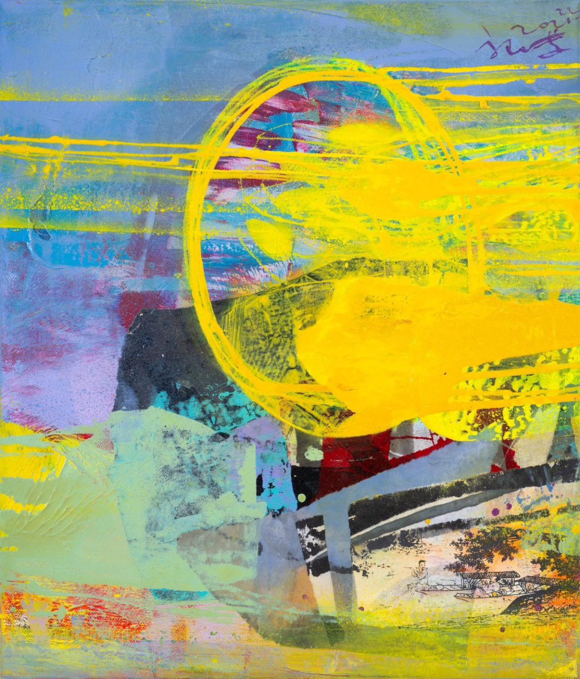 身為好友的簡文秀表示,許多畫家往往從水墨畫或水彩畫入門,轉向抽象創作,是需要更深厚的底蘊、勇氣及才情。這次郭博州個展呈現疫情後的創作轉折,從「生命風景的流動」出發,融合東方山水與西方抽象,傳統跟現代精神,展出70餘幅作品,包含「疫情前傳」、「早春行旅」、「富貴逢時」、「金韻荷風」與「狂草」等系列,畫風大膽鮮明,自成一格,深刻地展現他對生命、自由與自然的關懷。