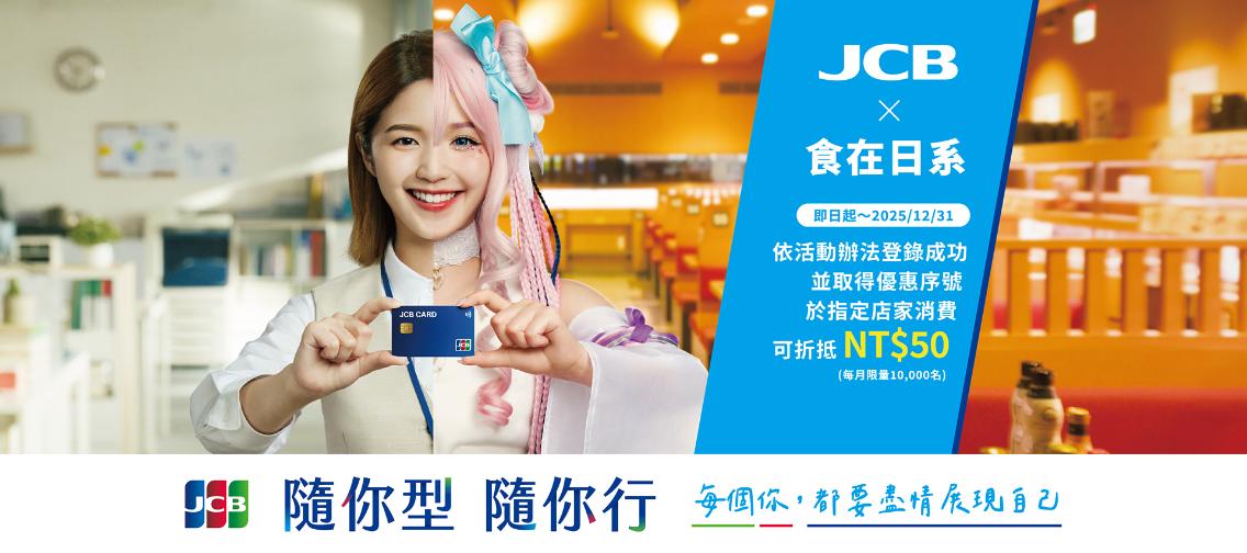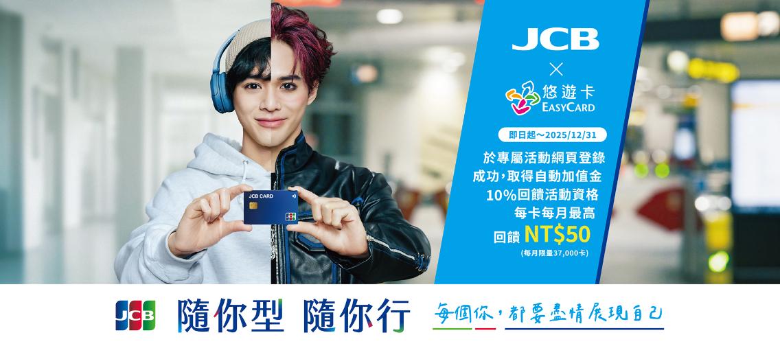 來自日本的國際品牌 JCB,一直是旅日必備的支付神器,在台灣更是超多卡友的愛用首選。這次,JCB不只滿足你旅行時的需求,要把優惠直接延伸到日常生活──全台美食、交通、購物、旅行通通包辦,國內外都能享受專屬折扣,刷卡就是爽快。特別是 20至30歲的 Z 世代 & 千禧族,全面升級各種促銷活動與優惠內容,讓你一刷就覺得:「這張卡,就是我的個性代表」,更多好康,請鎖定 JCB 台灣官方網站。