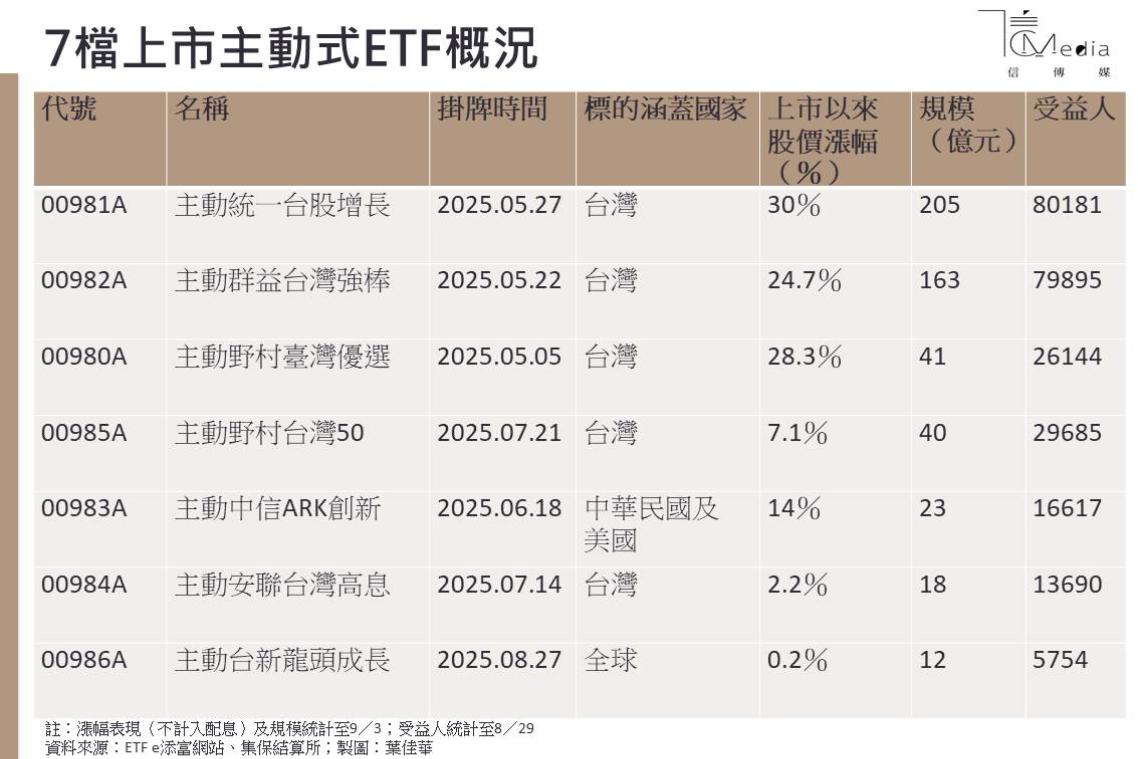 7檔主動式ETF規模超過450億元,這3檔漲幅超越大盤表現
