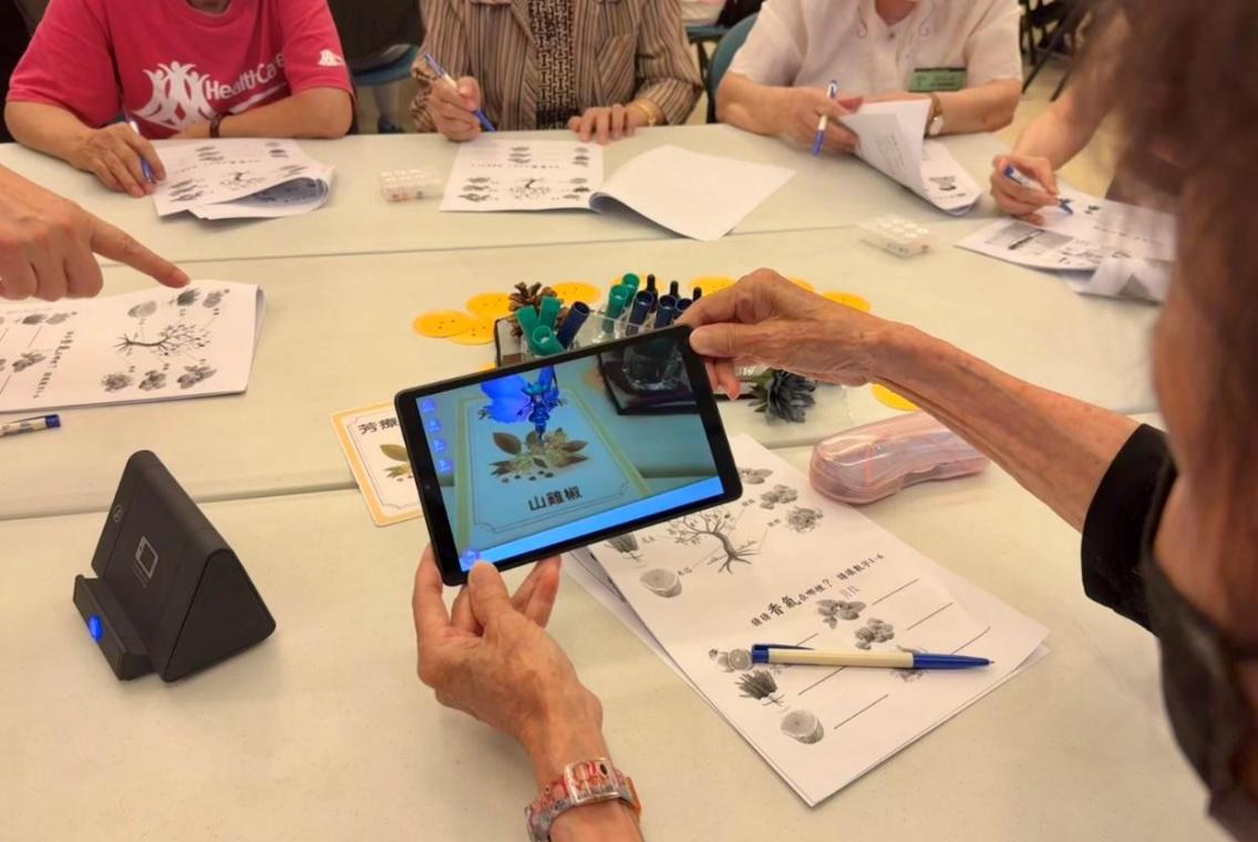 另一方面,高齡者是最容易罹患失智症的族群,失智症除了認知功能障礙外,亦常伴隨情緒、行為、精神疾病等「非認知症狀」。為此,郭鐘隆特別將失智症常見的異常亢奮、憂鬱、焦慮、妄想等情緒,製作成一張張情緒牌卡,讓高齡者用手機或平板掃描牌卡後,出現一位虛擬的花仙子與高齡者進行互動,並向長輩們說明該種情緒有哪些對應症狀,又有哪些植物和精油可以控制情緒。最後,在 AR 課程的尾聲,還會邀請芳療師前來指導高齡者如何調配精油,進一步加深學習印象。