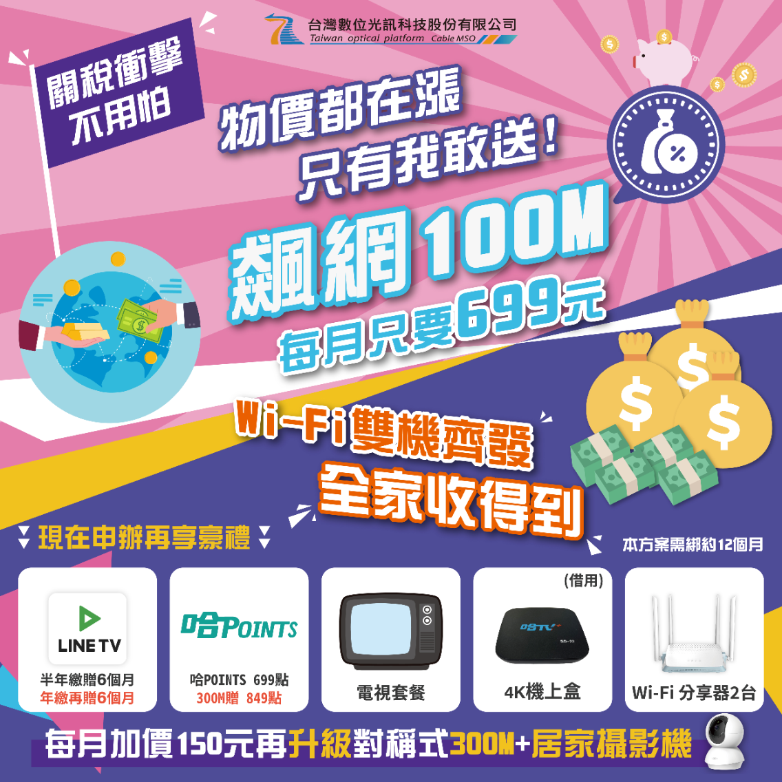 在物價持續上漲的時代,如何用最划算的價格享受優質網路服務,是消費者最關心的問題。台灣數位光訊科技股份有限公司(簡稱台數科)宣布自 9 月起至 11 月 10 日止,推出限時「光速開學GO」專案,以市場最強 CP 值搶攻開學季商機。主打 高速 100M 光纖網路,每月僅 699 元,再加碼送出五大豪華好禮,讓用戶輕鬆升級數位生活。