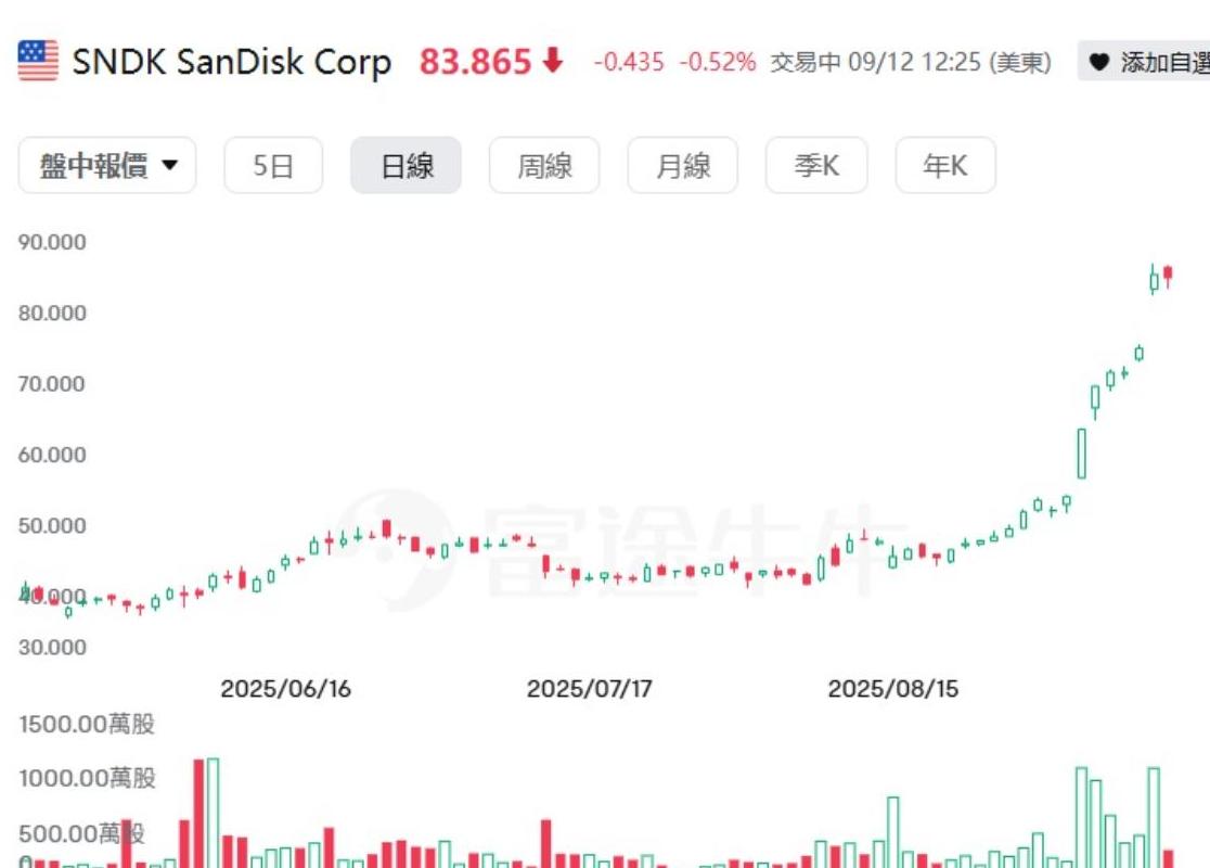 花旗環球上周的一篇研究報告指出,受 AI 領域對儲存需求激增驅動,明年全球關鍵科技商品 DRAM 與 NAND 快閃記憶體恐面臨供不應求局面,國際記憶體大廠SanDisk上周股價跳空大漲,一舉來到83美元近期新高,同時,美光和SanDisk都暫停或者調漲記憶體報價。