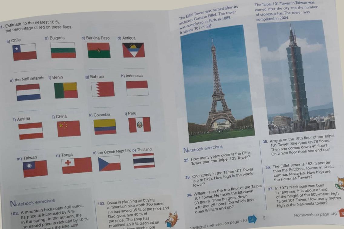 楊德清進一步指出,芬蘭的小學數學課本中甚至出現了臺北101大樓、中華民國國旗,感到格外親切之餘,也不禁讚嘆芬蘭教科書編製者將國際化內容嵌入數學教育的苦心。「不但如此,芬蘭小學高年級的數學教科書裡也能見到自然科學的蹤影,在數學題目中結合鳥類、動物等相關知識。」