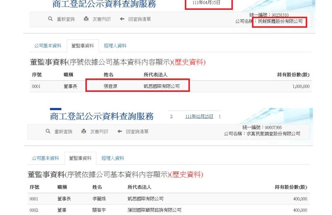 針對凱思國際的背景,王義川指出,這家公司曾經投資頗受民眾黨信任的求真民調,凱思國際的負責人跟求真民調負責人曾經是同一個人(按:李麗娟);而凱思國際也曾投資民報媒體(按:民報媒體股份有限公司),當時的法人代表名叫張晉源,曾跟民眾黨主席黃國昌一起創辦公益吹哨者保護協會。