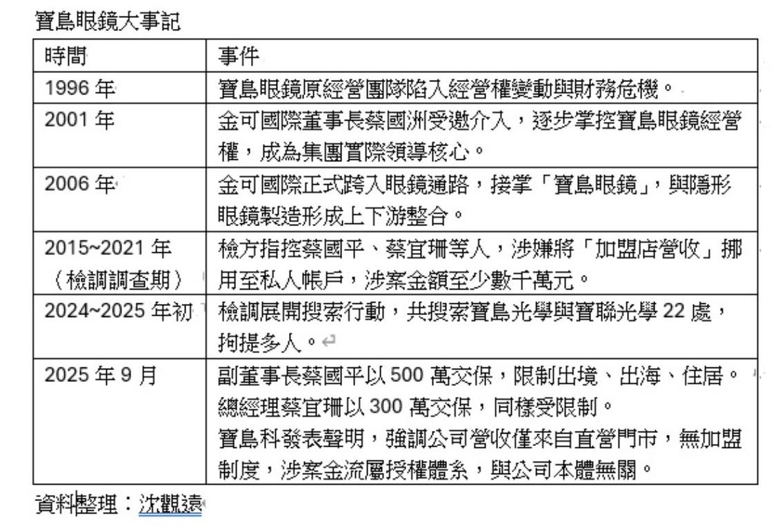 寶島科進一步指出,「寶島眼鏡」商標屬於關係企業寶聯光學,公司是經由授權使用,寶聯同時也是主要供應商。公告中明確強調,涉案金流若涉及加盟體系,應僅屬寶聯光學及其加盟店的業務範疇,與寶島科本體無涉。換言之,公司試圖切割上市公司與關係企業,降低外界對財報與金流受到衝擊的擔憂。