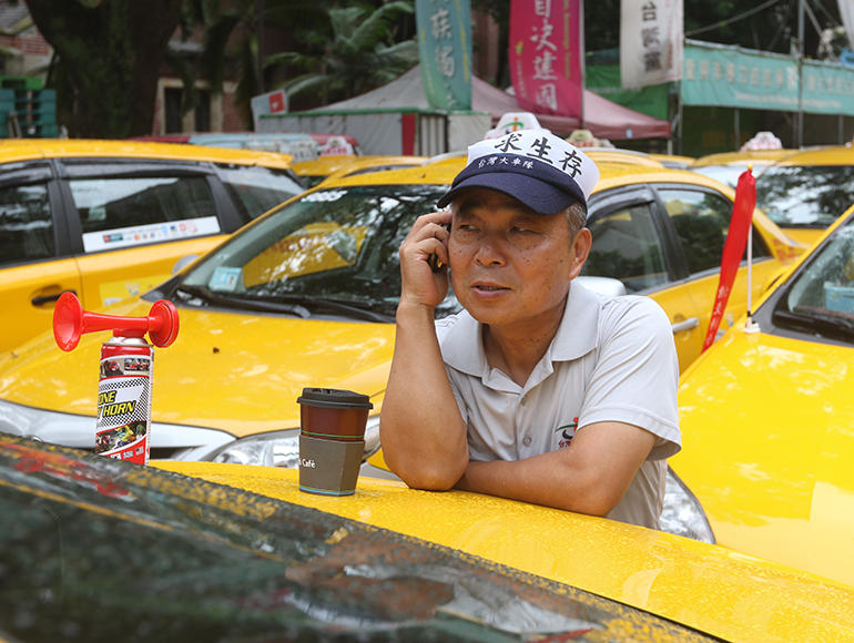 由中華民國計程車客運商業同業公會全國聯合會、台北市汽車駕駛員職業工會等團體發起的「全台計程車團結大遊行」,7月11日下午2時在立法院集合,上千輛計程車將立法院周邊道路包圍,形成一片特殊的「黃海」。