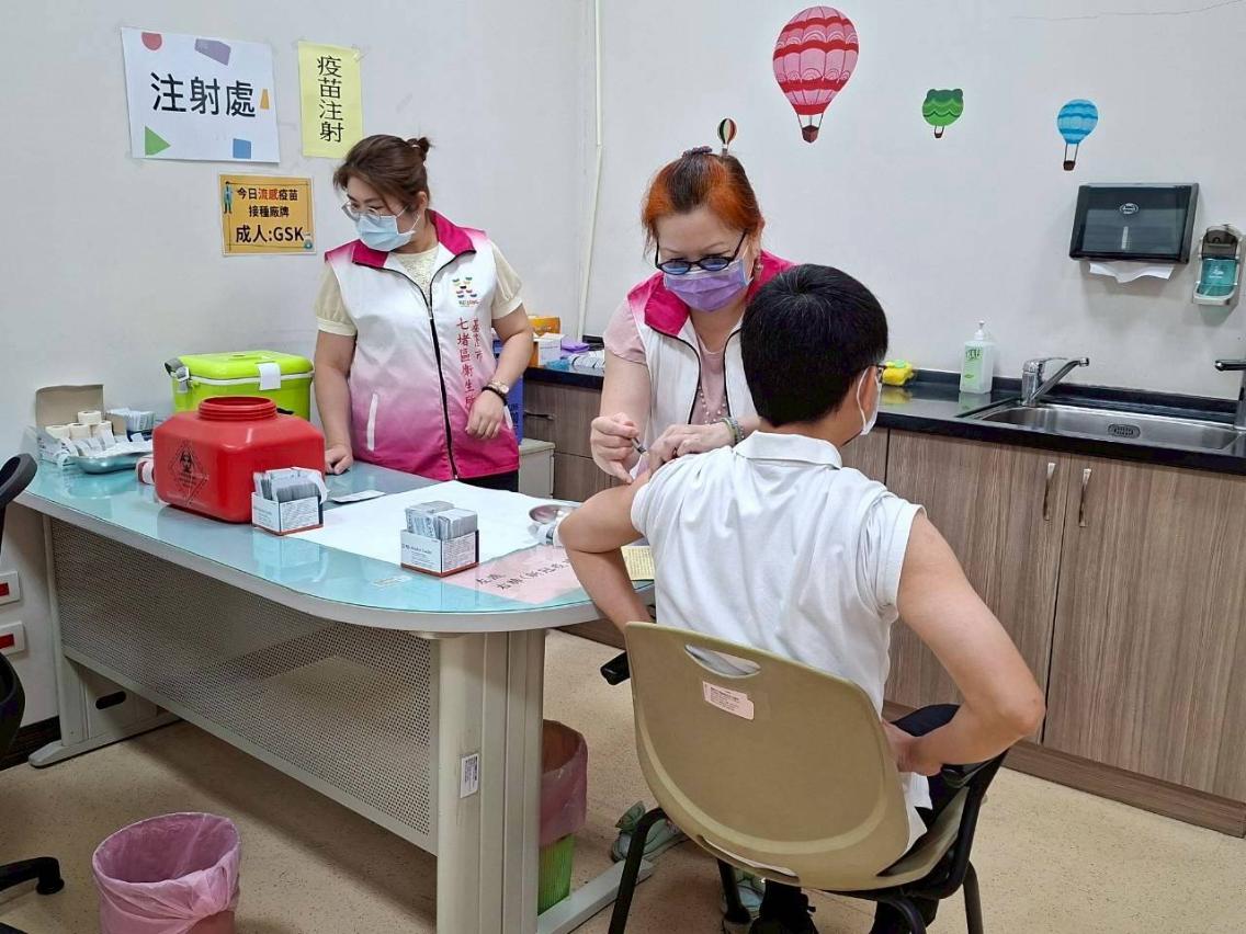 局長張賢政率先挽袖接種疫苗。(圖片來源/基隆市政府)