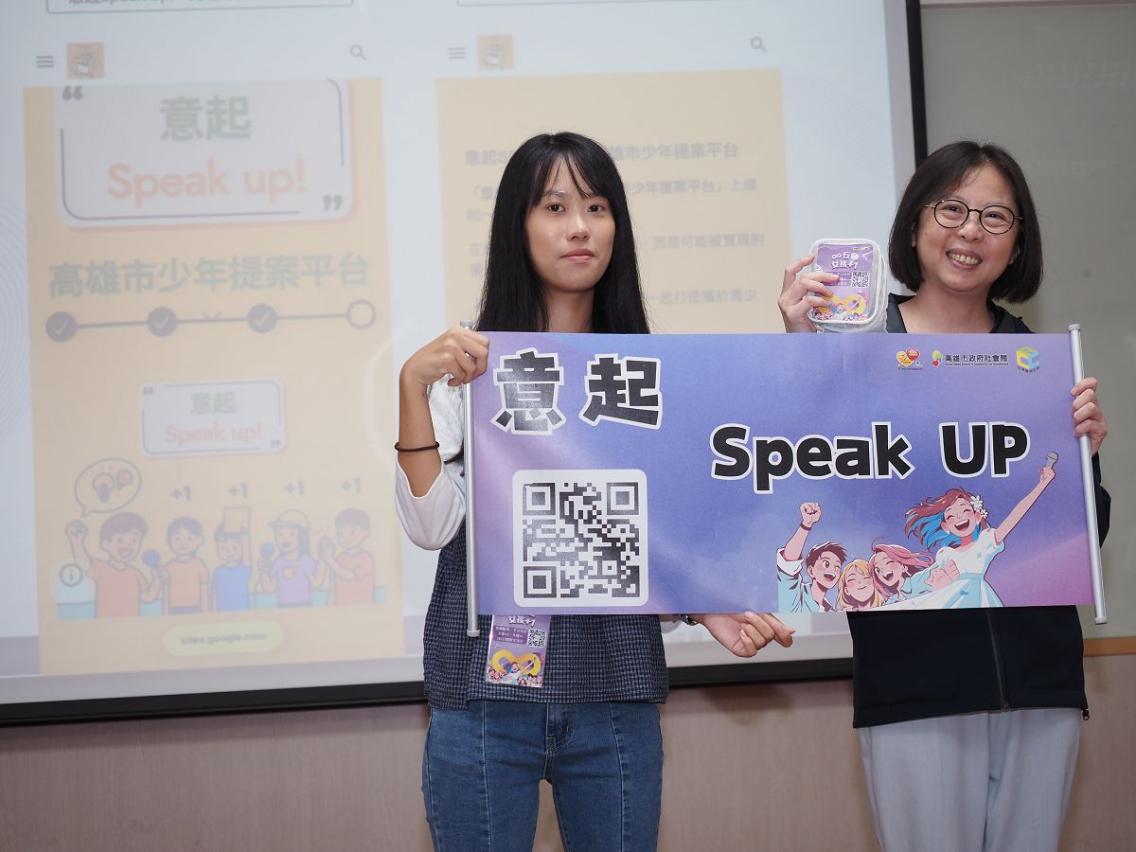 社會局長表示為提供少年能有專屬發聲平台,社會局建置「意起 Speak up!」高雄市少年提案平台(https://sites.google.com/view/khhspeakup/index),少年可以提出對高雄事務的各項想法,只要在期限內獲得30人響應,即可獲得正式回應,讓意見不再停留於課堂或朋友圈,而有機會真正影響社會。