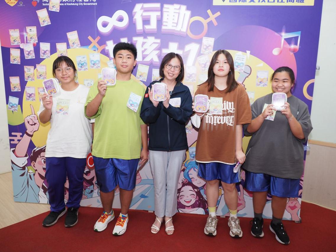 透過多元互動的活動設計,帶領學生從自身經驗出發,思考並挑戰性別框架的限制,並邀請高雄市第八屆少年代表王怡人,及參與兩屆「創意圓夢‧公益行動」提案人蔣佳勳現身分享,述說她們在市府社會局推動的社會參與活動中,突破自我設限並找到屬於自己的力量,鼓勵同儕勇敢發聲。社會局長蔡宛芬親手傳遞象徵勇氣的「力量娃包」給現場學生,寓意每一位少年心中都蘊藏無限能量,鼓勵所有少年勇敢發聲,只要被看見與支持,就能自信前行。