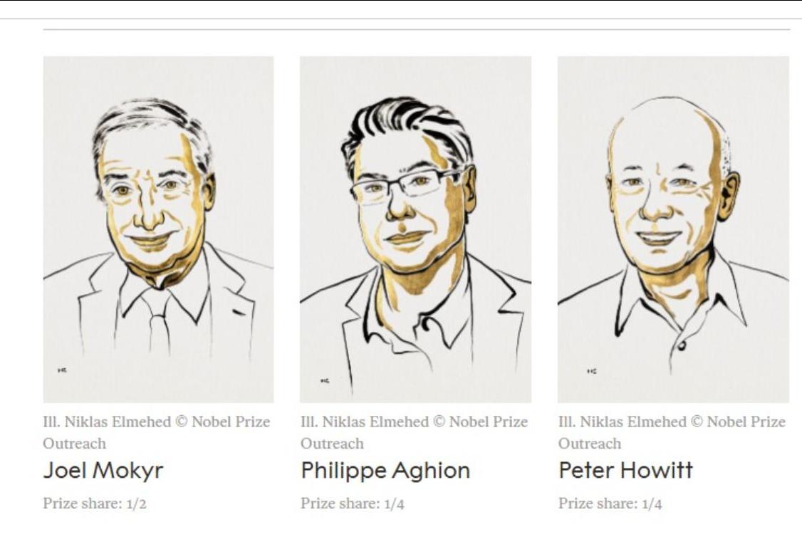「我到現在還在試著消化這個消息。」美國西北大學的教授喬爾·莫基爾(Joel Mokyr)和阿吉翁(Philippe Aghion)和郝伊特(Peter Howitt)三人因「對創新驅動的經濟成長理論作出關鍵貢獻」獲頒諾貝爾經濟學獎。由曾獲得諾貝爾經濟學獎的亞當·斯密(Adam Smith)負責通知他們。