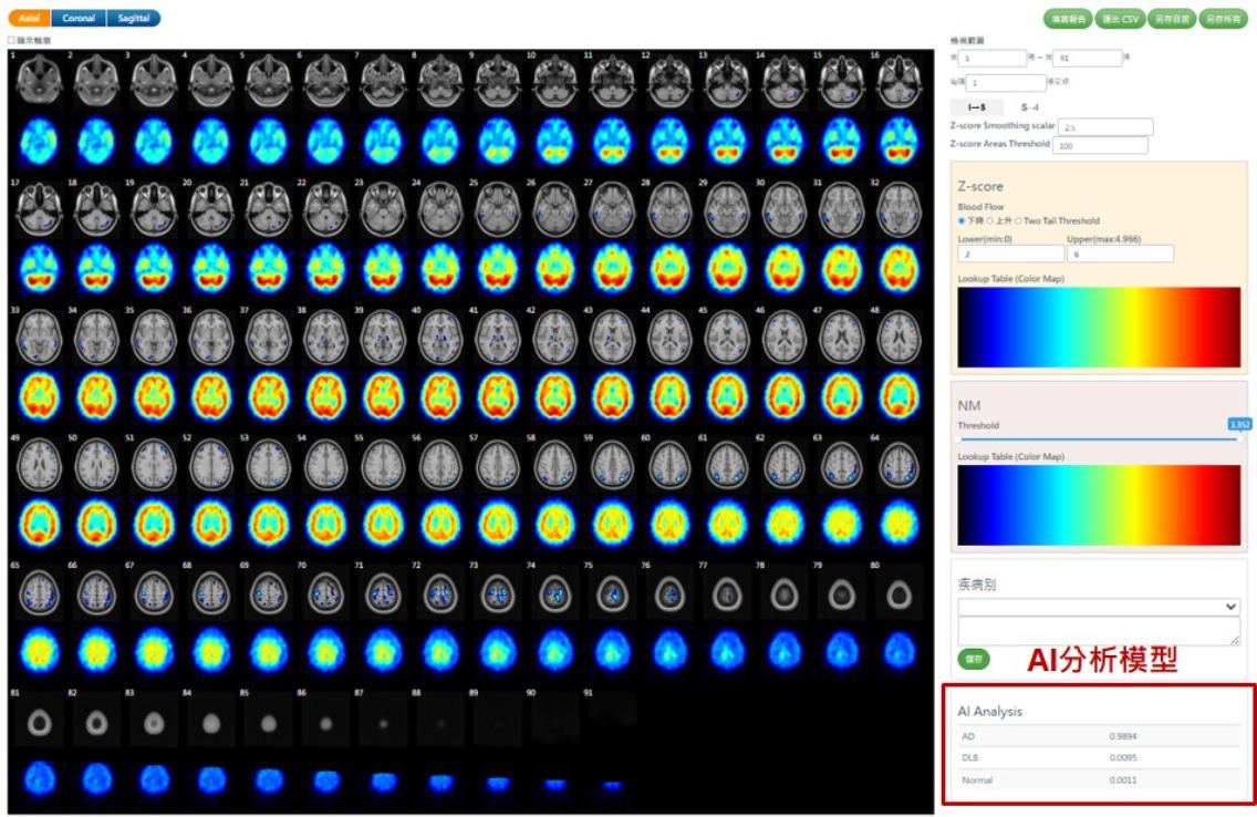 亞東醫院核醫科主任汪姍瑩補充,AI系統可在資料導入後快速生成半定量Z-score分析與三維定位圖,協助醫師辨識腦區血流異常,臨床驗證顯示,AI判讀與專家結果一致性超過9成,顯示AI已成功融入診斷流程。