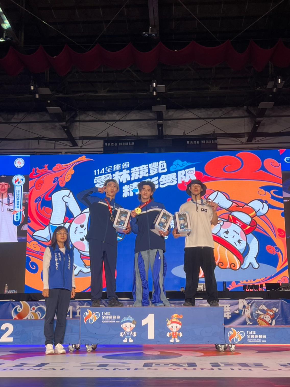 另外3枚銅牌則為跆拳道對打女子組57公斤級簡琦霏、田徑男子組標槍蕭煥霖及霹靂舞男子組Breaking自選曲羅國銓,皆為本縣在該競賽項目中首次獲得獎牌。