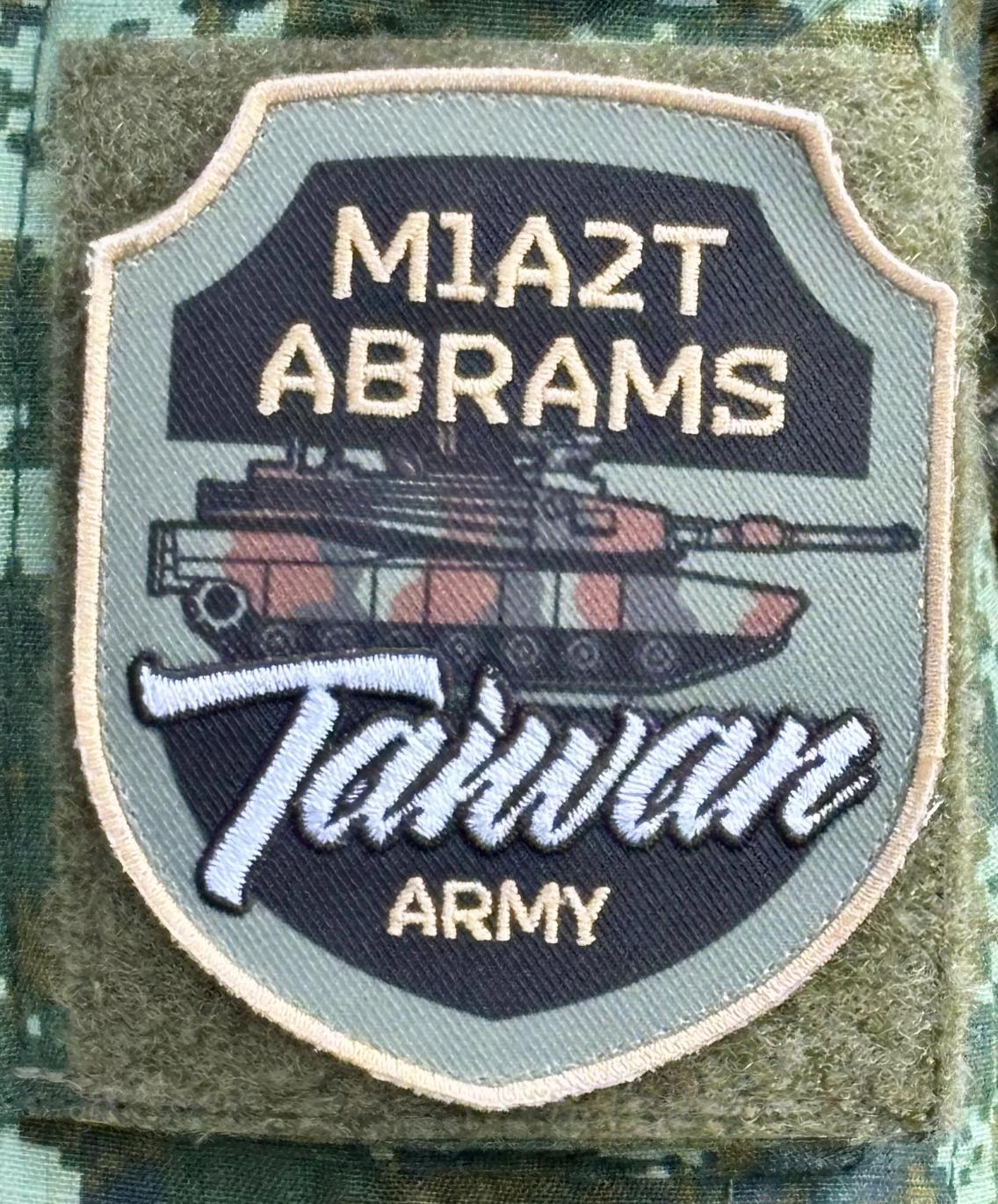 M1A2T臂章在前方呈現半圓代表防禦固守,守護前線。(攝影/蕭介雲)臂章設計,在前方呈現半圓代表防禦固守,守護前線。在下方繡有Taiwan和ARMY字模,展現守護國土的信心和決心。