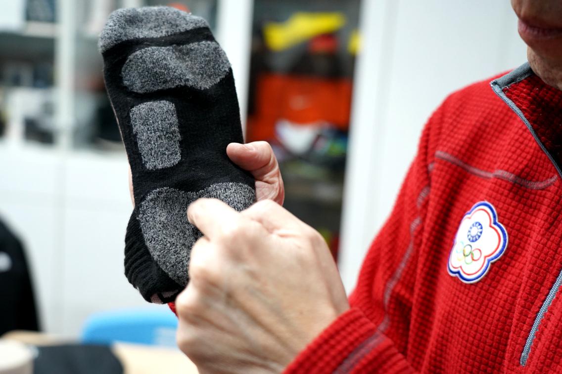 他強調,從理論、研究要變成實際應用的產品,這之間的距離是很遙遠的,以這雙襪子來說,團隊跟襪廠來來回回足足就花了2年的時間溝通,期間打樣了至少50次,最終才打造、生產出符合他們期望與水準的運動襪。