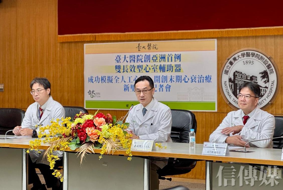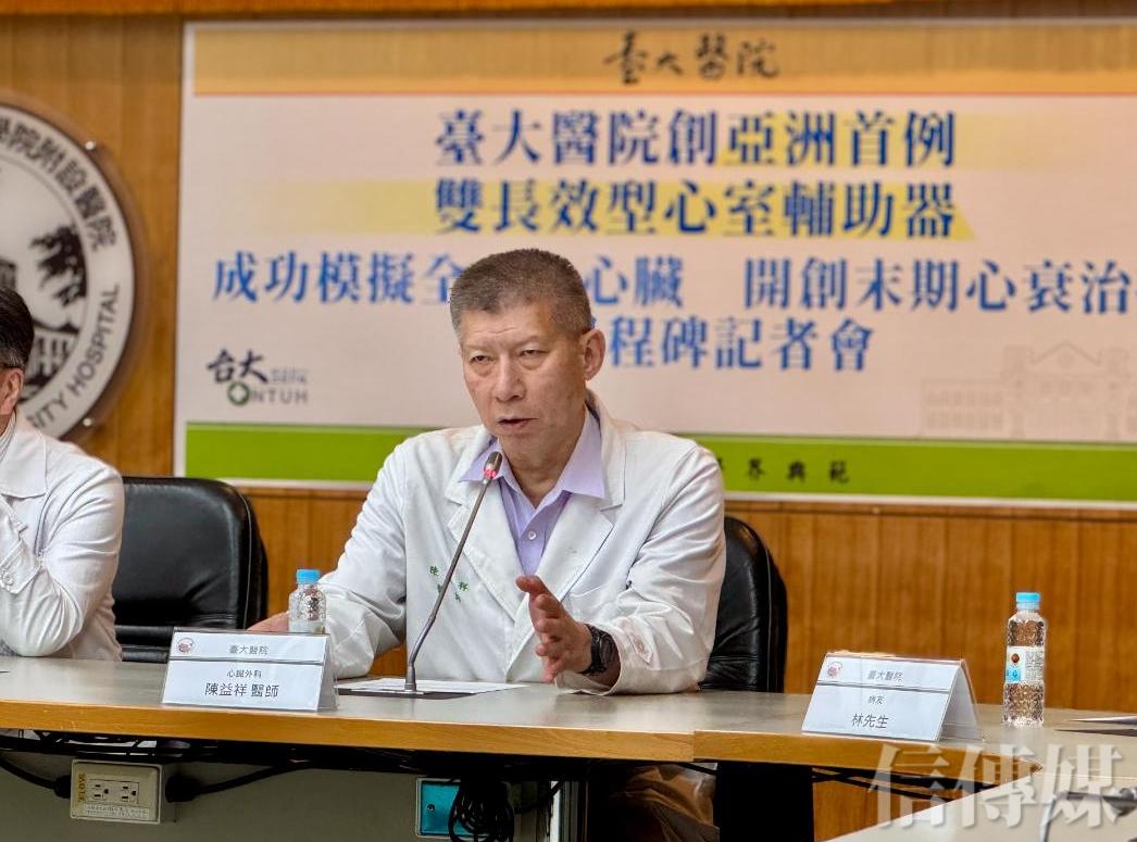 台大外科部副部主任紀乃新表示,這次由陳益祥教授帶領的外科團隊,以兩顆長效心室輔助器取代心臟左右泵血功能,「等於創造出兩台機器組成的全人工心臟。」他強調,這不僅是手術成功,更是團隊合作的勝利。