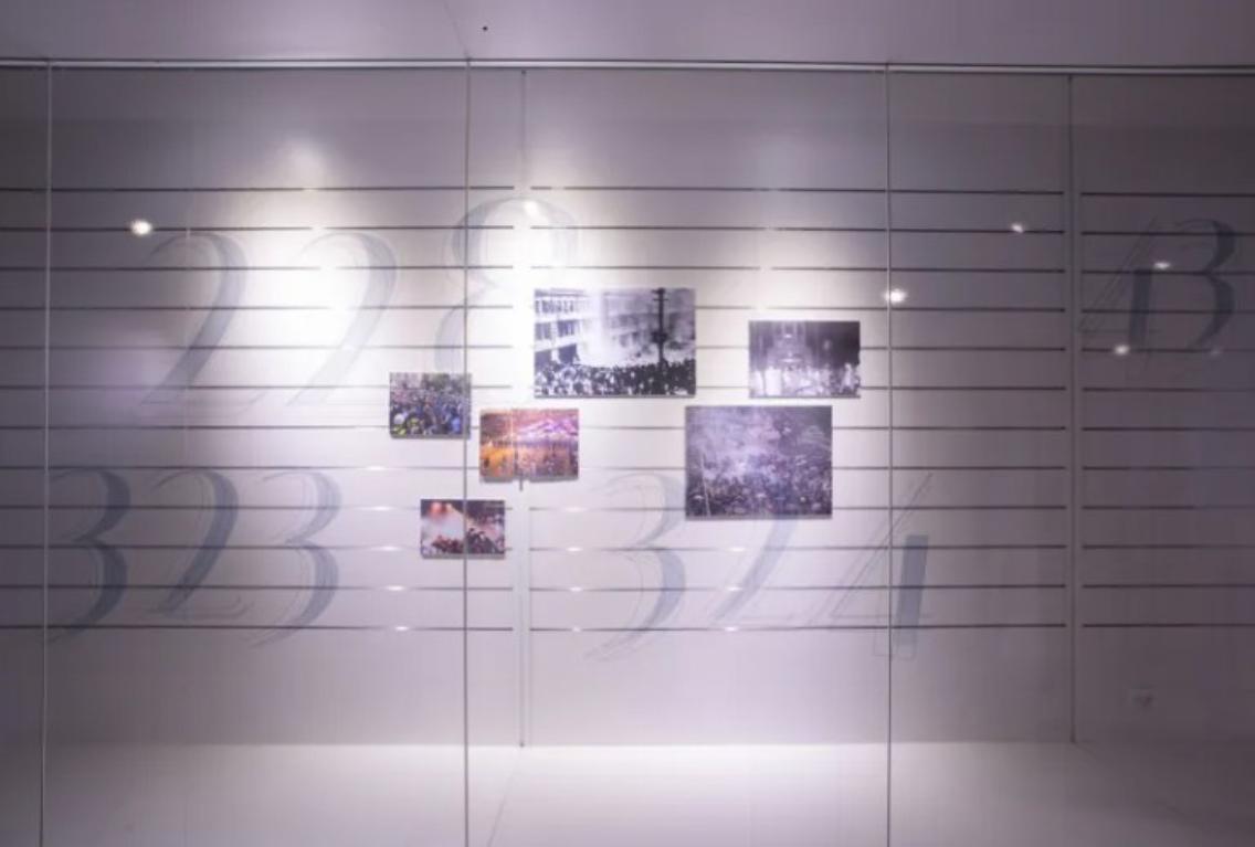 站在巨大的玻璃櫥窗前,觀看一個個數字密碼,就像從鉅觀的視角窺見改變歷史的社會運動,以及國家暴力烙下的集體印記拼圖。觀看陳設在玻璃櫥窗後的歷史照片,則像是記憶一般有著距離感,無法伸手觸及,卻又清晰可見。