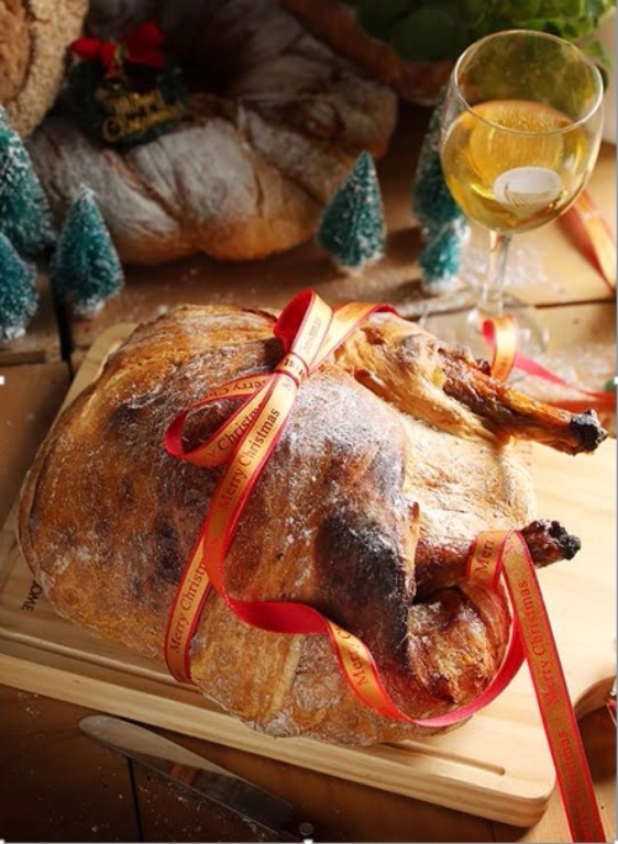 國王烘焙還有其招牌商品。徐師傅創意發想「國王烤全雞麵包」,使用法國麵糰包覆整隻雞,讓雞汁滲透到麵包體上,外酥內軟的法國麵包加上鮮嫩可口的雞肉,香味四溢,唇齒留香。