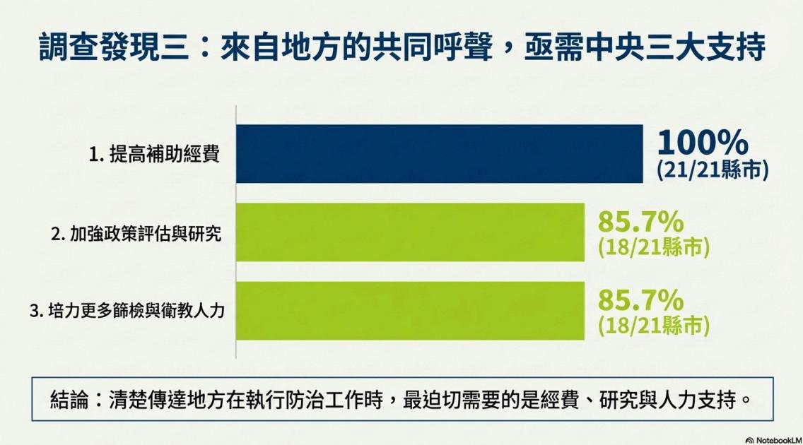 今年調查特別蒐集縣市對衛福部的政策需求,提出了極具一致性的呼聲: