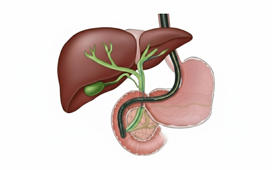 黃柏翰說明,這指的是「逆行性膽胰管攝影術及取石術」(ERCP)。ERCP是一種經由口腔的「進階版胃鏡」技術,醫師會將內視鏡伸入十二指腸,找到膽管的開口,再透過X光攝影確認結石位置,並使用特殊的器械將「總膽管」中的結石取出,使其排入腸道。這也解答了民眾的兩大疑惑:第一,ERCP主要用於處理「總膽管」,無法伸入「膽囊」內取出膽結石,因此膽囊炎仍需外科手術。第二,腹腔鏡手術是處理腹腔內的「膽囊」,而ERCP是從消化道「內」處理「膽管」,兩者位置與路徑完全不同,因此難以在膽囊手術時簡單地「順便」處理膽管結石,若要同時處理,手術範圍及傷口勢必會擴大,手術時間也會延長。