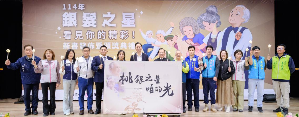 桃園市政府11月28日在桃園市綜合會議廳舉辦「114年銀髮之星新書發佈暨頒獎典禮」,同步發表銀髮生命故事紀錄書籍《桃銀之星 咱的光》,並表揚本年度傑出長者與銀髮達人。市長張善政表示,桃園雖為六都中最年輕的城市,但同樣須正視國家逐步邁入超高齡社會的挑戰,本市 65 歲以上老年人口已逾 38 萬餘人,面對高齡社會來臨,城市發展不能只著重建設與經濟,長者的生命經驗與社會貢獻同樣是桃園重要資產,盼透過表彰典範與分享故事,使更多市民看見銀髮族群在不同領域的持續投入與創新。