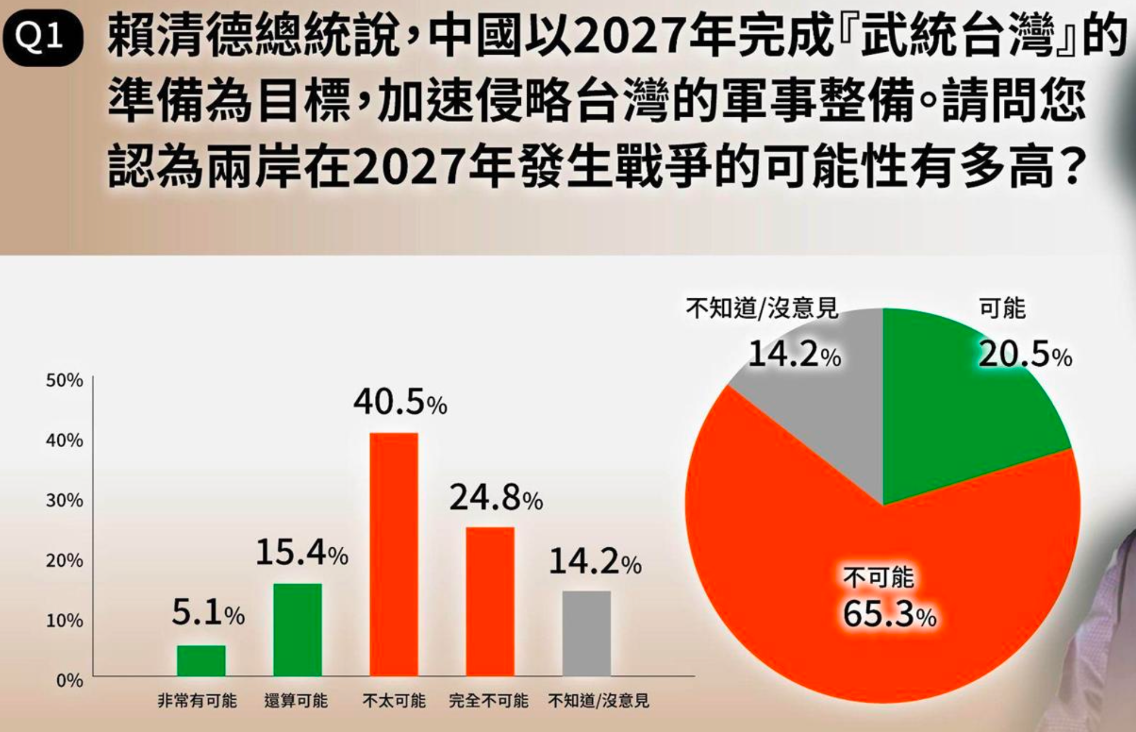 65.3%認為2027戰爭不可能,51.5%傾向尋求對話
