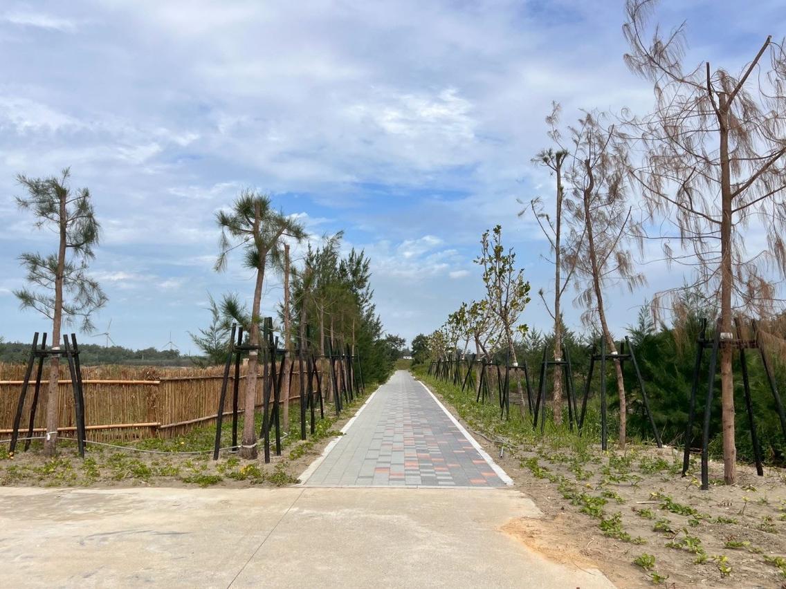 第二期工程以海岸遊憩及生態復育理念,完成增設活動廣場停車區及休憩鋪面約794平方公尺、簡易廁所4座、男女戶外淋浴區、碎石枕木格框步道長約97公尺、定砂竹圍籬約290公尺、紅豆餅意象圓弧型親水階梯及增加綠蔭植栽等拍照打卡新景點,大幅提升遊客玩沙踏浪的便利性,夕陽西下時,更吸引許多遊客拍照打卡。