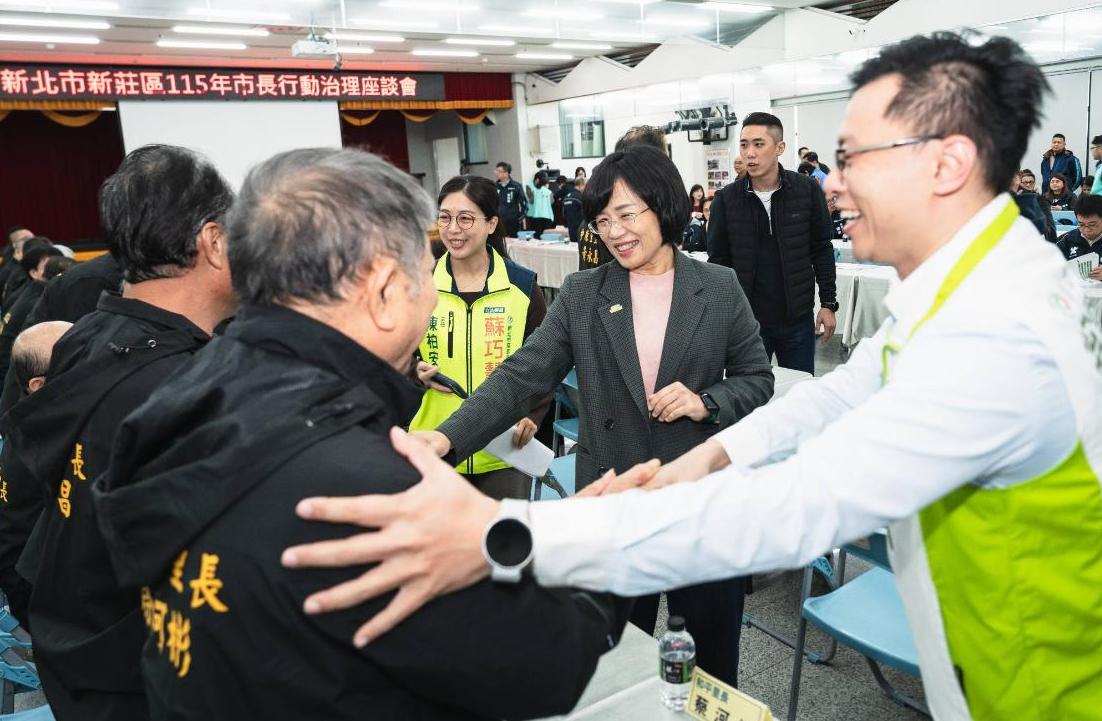 新北市長侯友宜15日主持新北新莊區行動治理座談會,民主進步黨籍立法委員蘇巧慧和新北市副市長劉和然同台互動熱絡,侯友宜表示,很多工作要趕快做,行動治理就是要解決大家不易解決的問題,在他開了258場行動治理後,3000多件問題解決率已達9成。