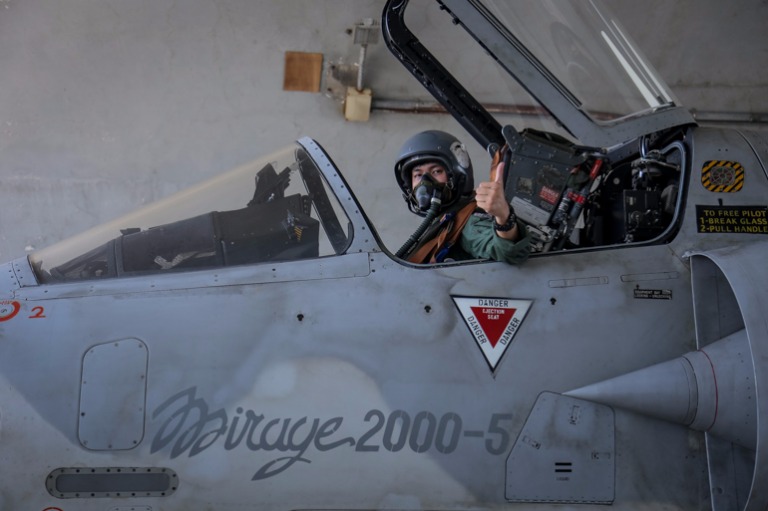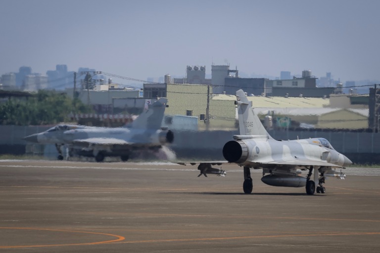 飛行員駕駛著幻象2000駛出機棚,快速起飛。.jpg)