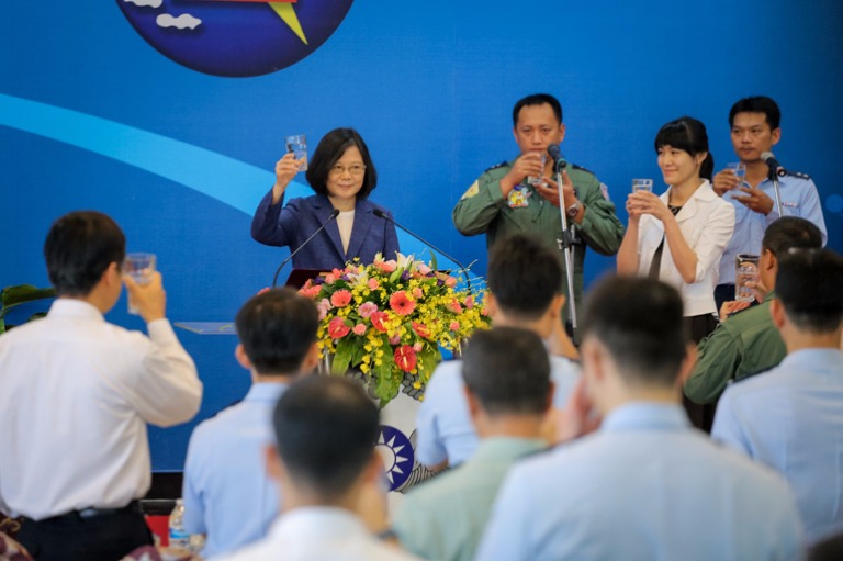 總統蔡英文今天(2日)視導位於新竹的空軍499聯隊,並與聯隊官兵一同午餐,面對近來中共戰機頻頻挑釁,蔡總統致詞特別強調,499聯隊是駕馭台灣主力戰機-幻象2000的精銳部隊,她看到了聯隊官兵的精實訓練,表示這是一支有堅強戰力和高昂士氣的部隊,並相信有499聯隊捍衛台海領空,台灣人民絕對可以放心。