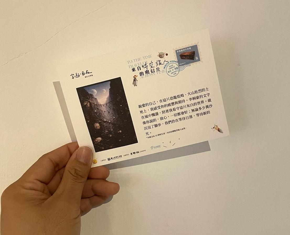 臺文館表示,「來自時空旅人的明信片」是臺文館繼「文學任意門-通往臺灣詩社」之後,再一次使用生成式AI所發展的互動裝置,裝置設計概念延伸自旅行文學中關於「移動」與「書寫」的想像,擴及到穿梭於不同時間、空間的時空旅人,讓生成式AI能夠具體實踐平行宇宙的文學風景。
