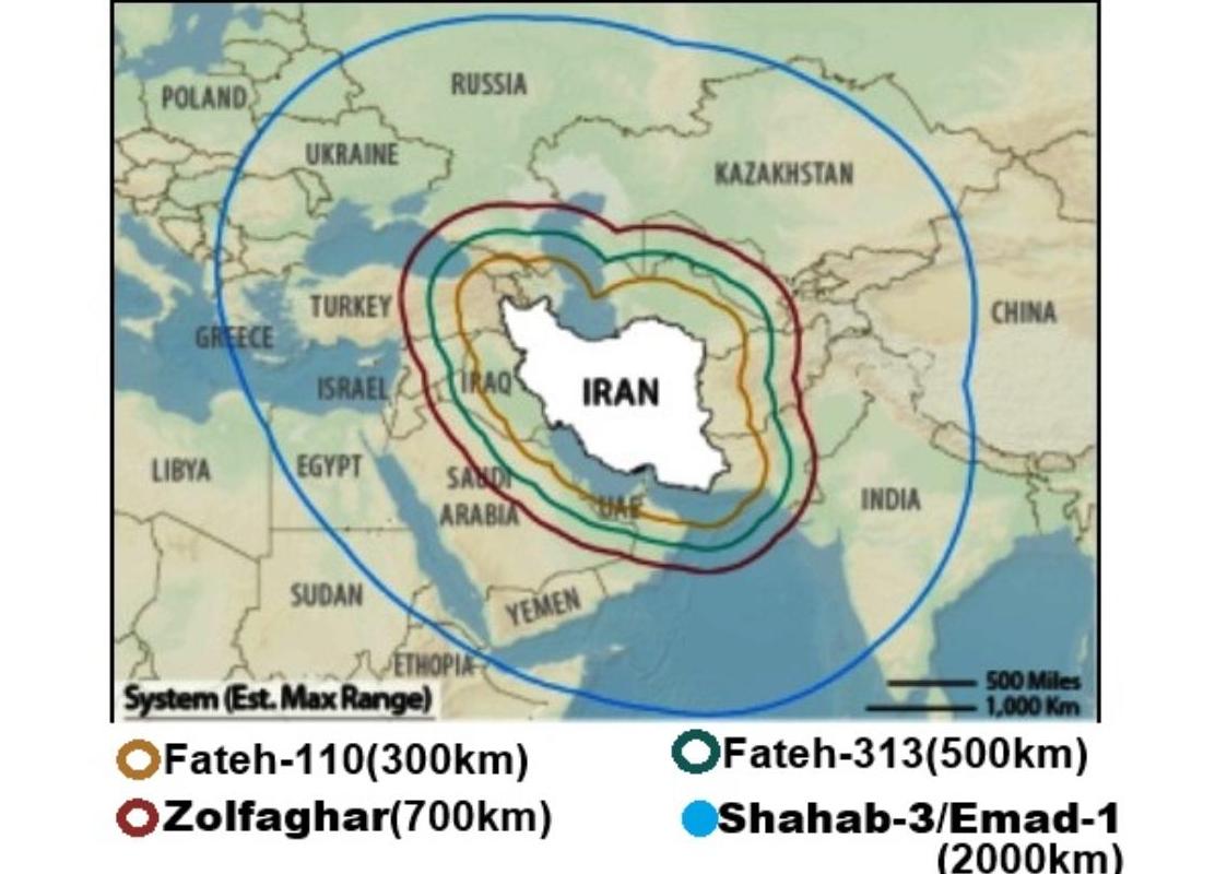 伊朗的短程彈道飛彈(射程低於 1000 公里)包括液體燃料的「Shahab-1」、「Shahab-2」與「Qiam-1」,其技術源自蘇聯時代的 Scud 系統。自 2000 年代起,伊朗開始測試「Fateh-110」系列固體燃料飛彈,射程約 300 公里;後續改良型「Fateh-313」射程提升至 500 公里。此系列衍生出多款改良型,包括「Zolfaghar」與反艦飛彈「Khalij Fars」,顯示伊朗在精準打擊與多用途設計上的企圖。