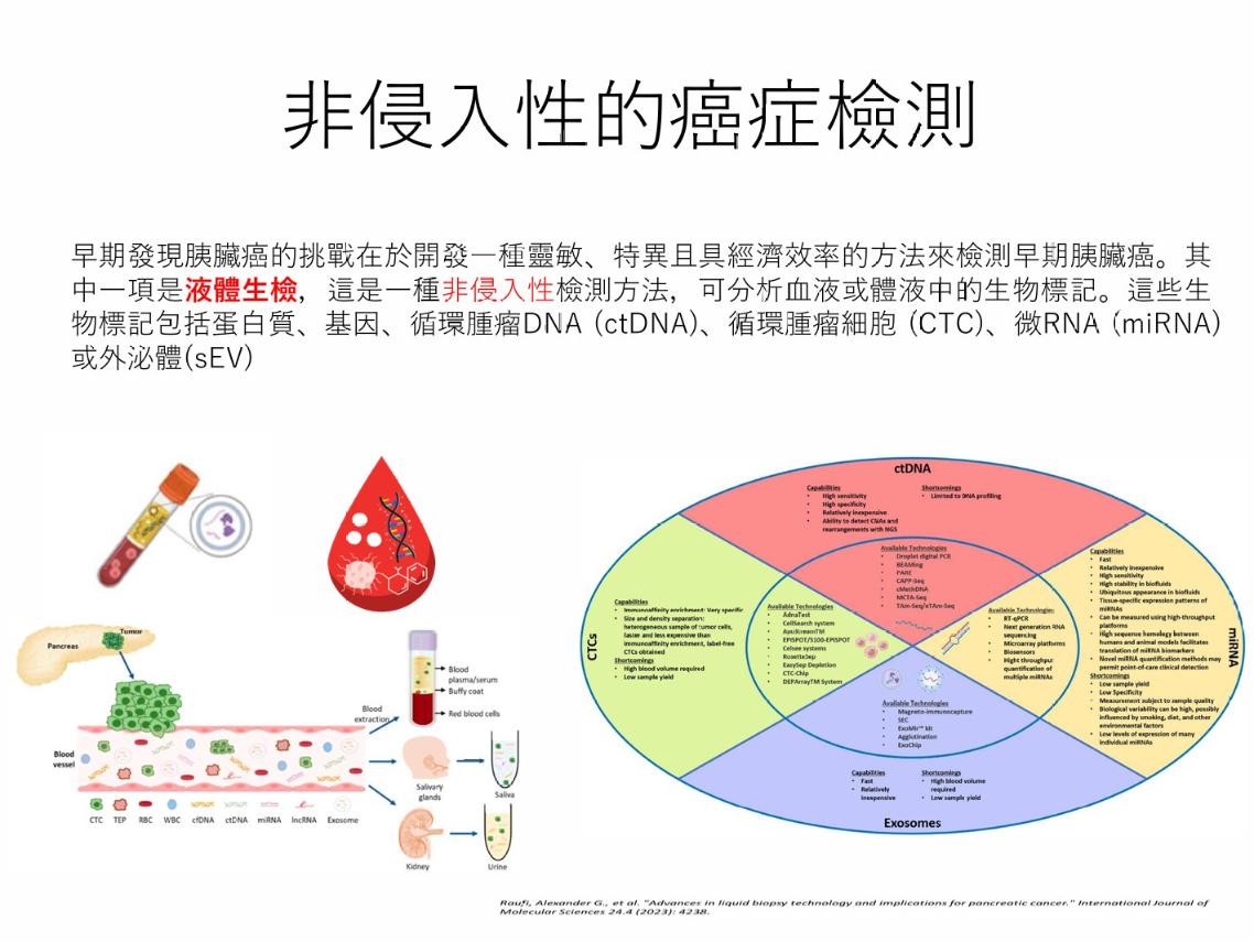 張毓廷先解釋,胰臟位於腹腔深處,早期幾乎沒有明顯症狀,即使透過影像學檢查也難以在極早期發現病灶。臨床常用的腫瘤標記CA19-9,雖具參考價值,但早期敏感度與特異度皆有限,難以作為單一可靠篩檢工具。