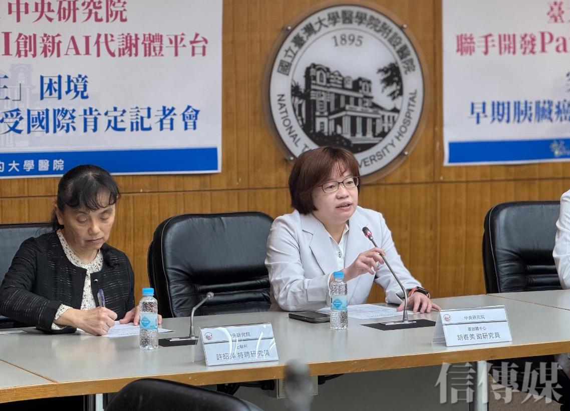 中研院基因體研究中心研究團隊助研究員胡春美回顧,自2014年起投入胰臟癌基礎研究,長期與台大醫院臨床醫師密切合作。她指出,過去研究已證實多項代謝異常與胰臟癌啟動密切相關,但真正困難的是,如何將實驗室中的分子發現,轉化為醫師可實際使用的診斷工具。