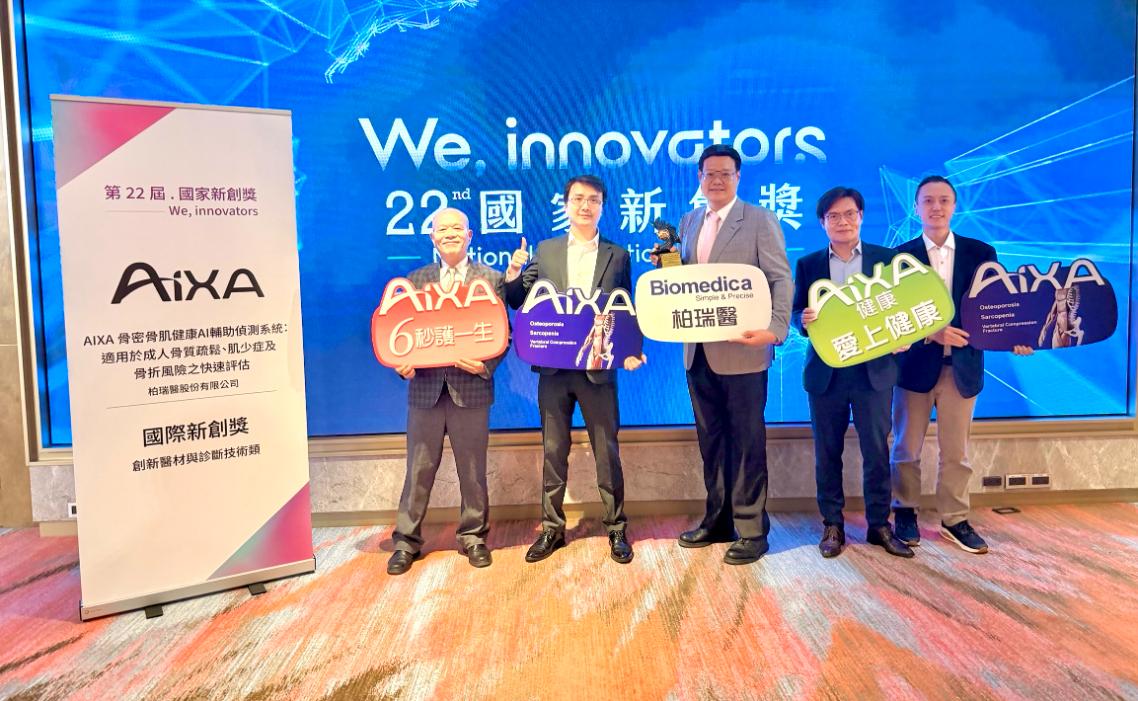 智慧醫療出現一項新突破。柏瑞醫(Biomedica)研發的「AIXA®骨質疏鬆與肌少症AI輔助診斷系統,」憑藉6秒鐘的AI判讀技術,快速檢查骨質疏鬆和肌少症,在第22屆國家新創獎獲「國際新創獎/創新醫材與診斷技術」類別肯定。