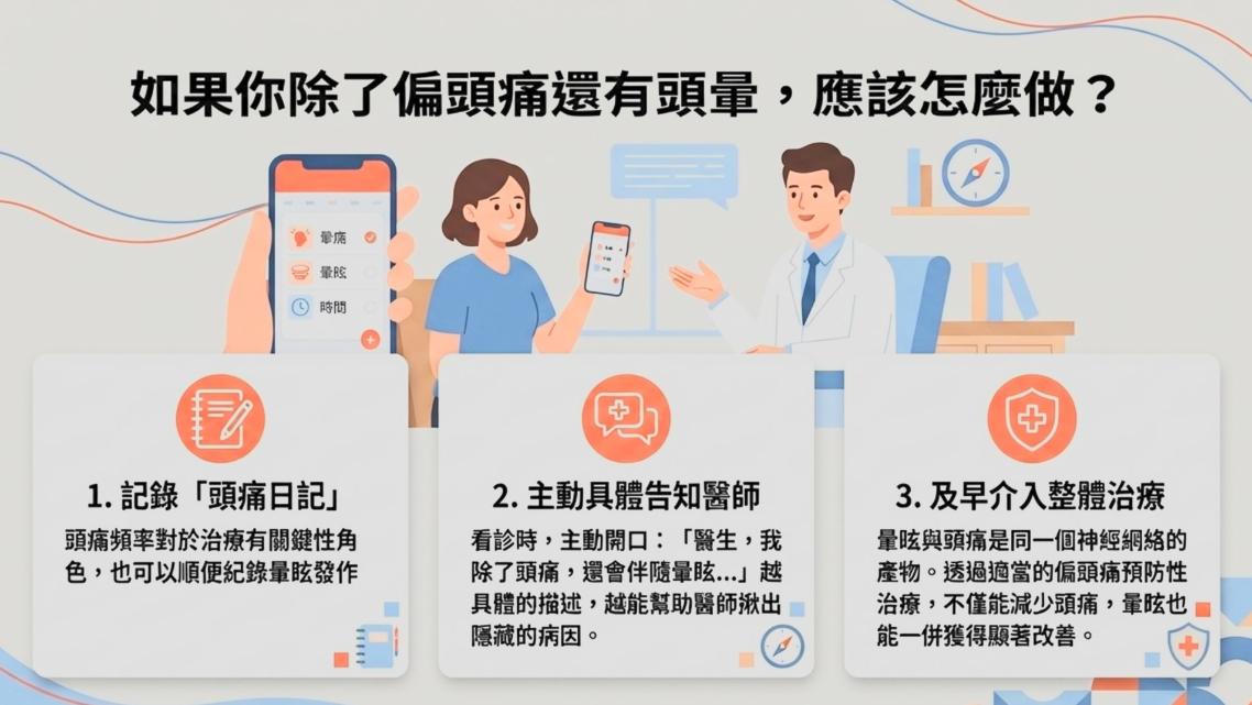 他指出,許多患者僅在急性發作時使用止痛藥或止暈藥,但這類治療多屬症狀緩解,無法從根本改善病情。相較之下,透過神經內科專業評估,使用預防性藥物(如偏頭痛預防用藥或生物製劑),才能有效降低發作頻率,並提升整體生活品質。
