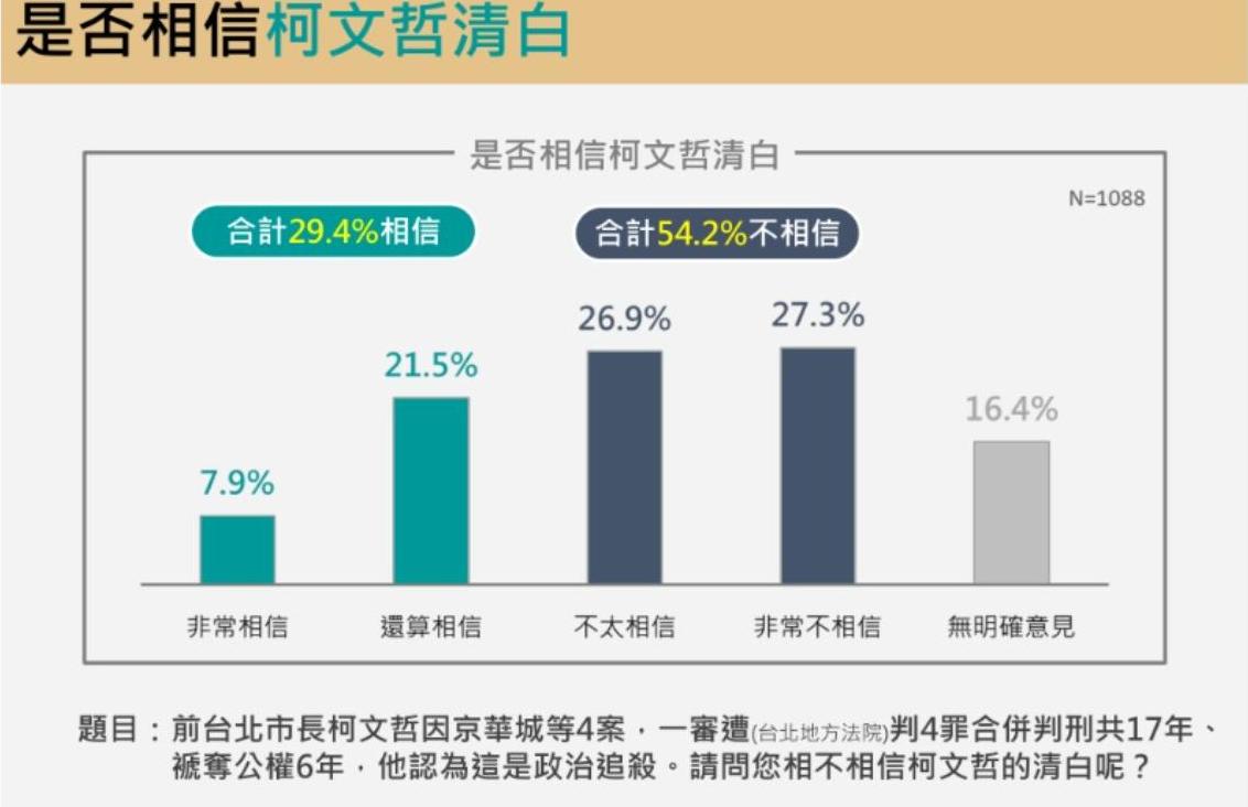過半民眾不相信柯文哲是清白的