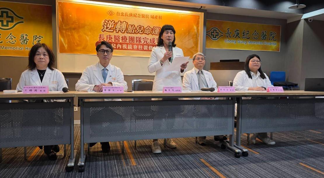 台北長庚醫院羅良明副院長表示,長庚醫院這次成功完成國內罕見的「胎兒內視鏡脊柱裂修補微創手術」,歸功於強大的多專科團隊合作,成員包括台北長庚婦產科、林口長庚神經外科、新生兒科醫師、小兒復健科、小兒腎臟科等等。